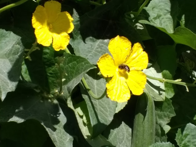 The two loofah vines have gone crazy and are taking over the bed.